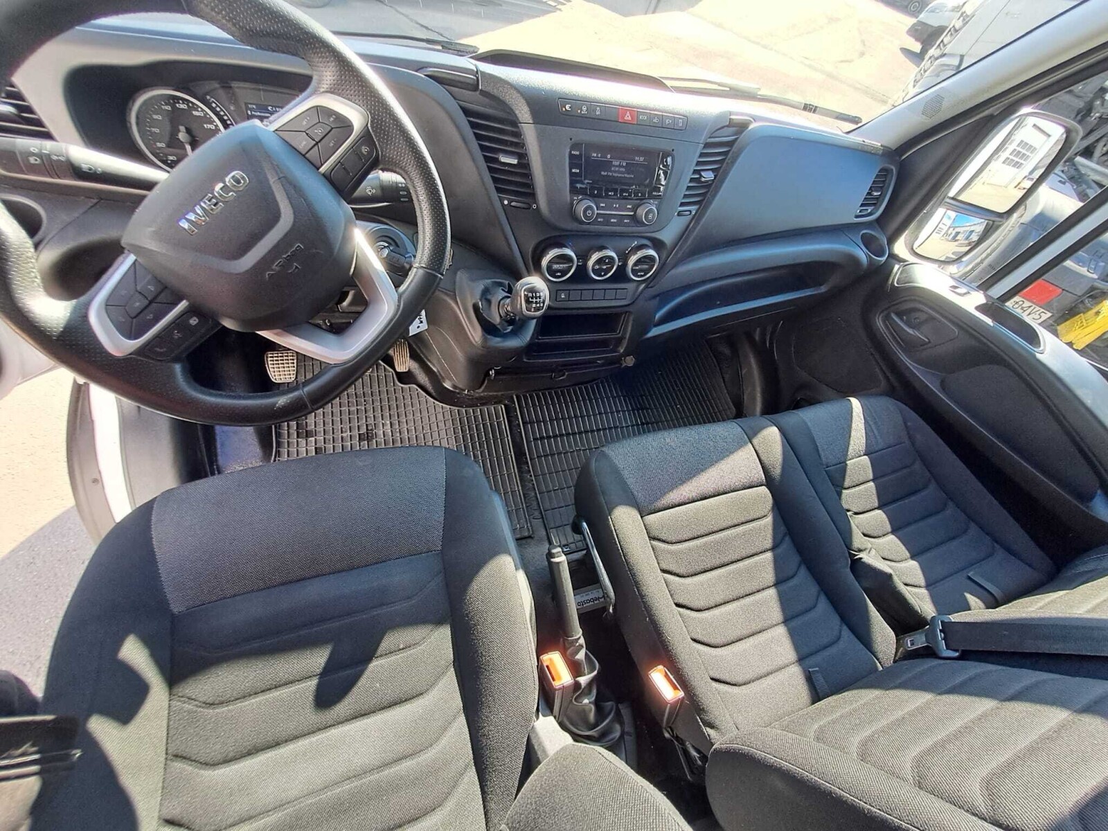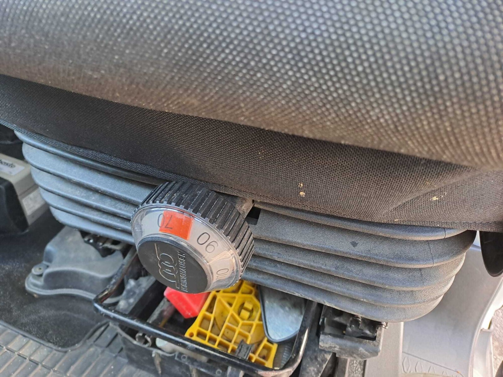 Fotel kierowcy amortyzowany, pełna regulacja (kąt oparcia, odsunięcie, wysokość i pochylenie siedziska – 4 stopnie), podparcie lędźwiowe, podłokietnik